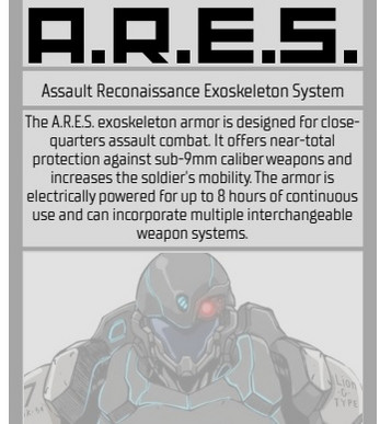 ARES is a fast and lightweight roleplaying game that puts you in the boots of an soldier wearing an A.R.E.S. (Assault Reconnaissance Exoskeleton System), deployed in high-risk missions where enemy fire, battlefield chaos, and hard moral choices define survival. The system uses just a handful of polyhedral dice (D4–D12) and allows you to: